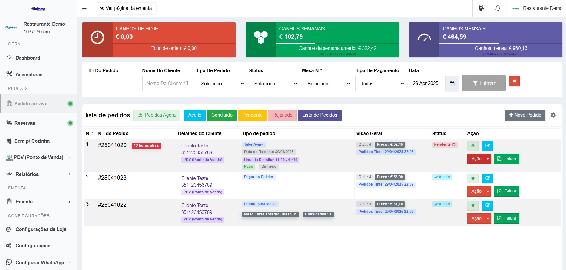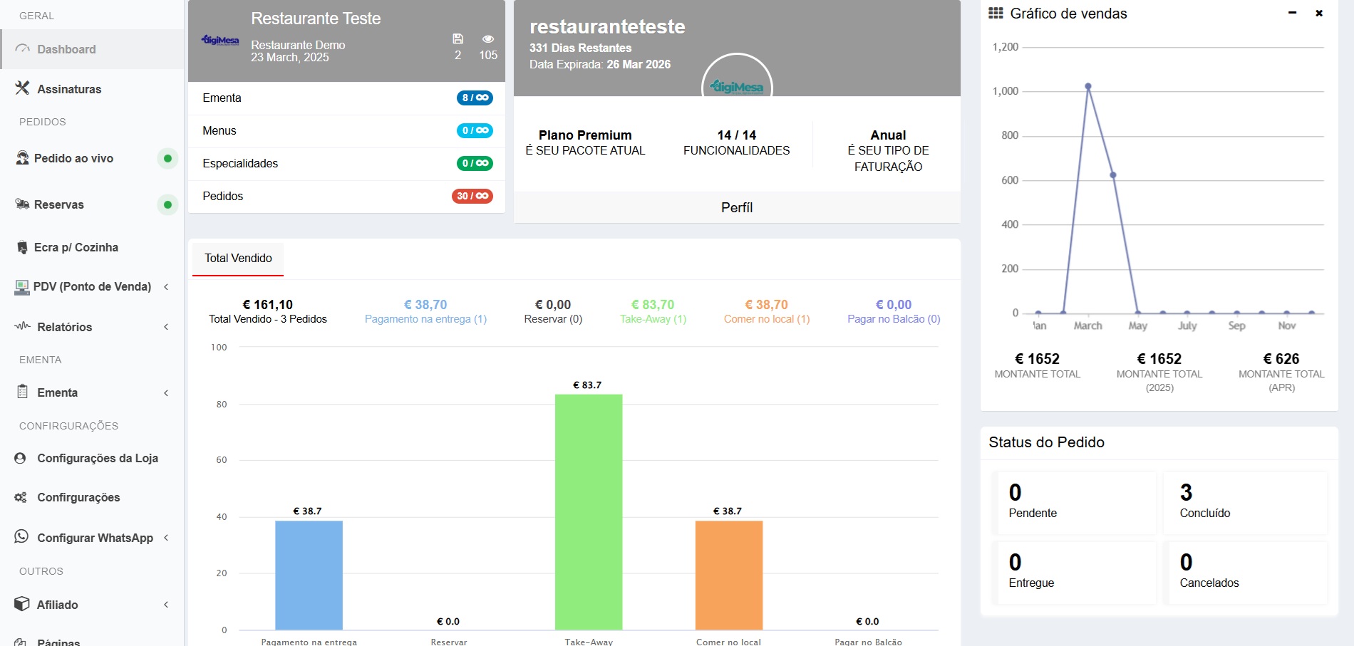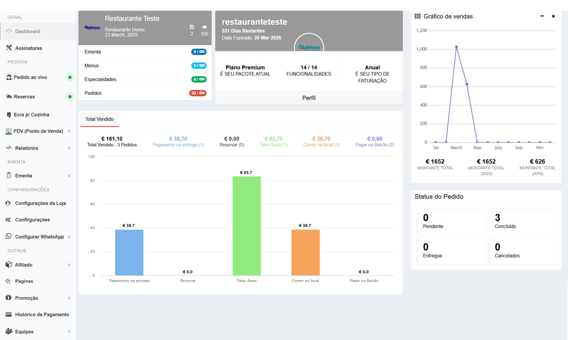 Testar GrátisDashboard Intuitiva - Ecrã para Cozinha - Gerir Equipa e Estafetas - Relatórios inteligentes - PDV completo