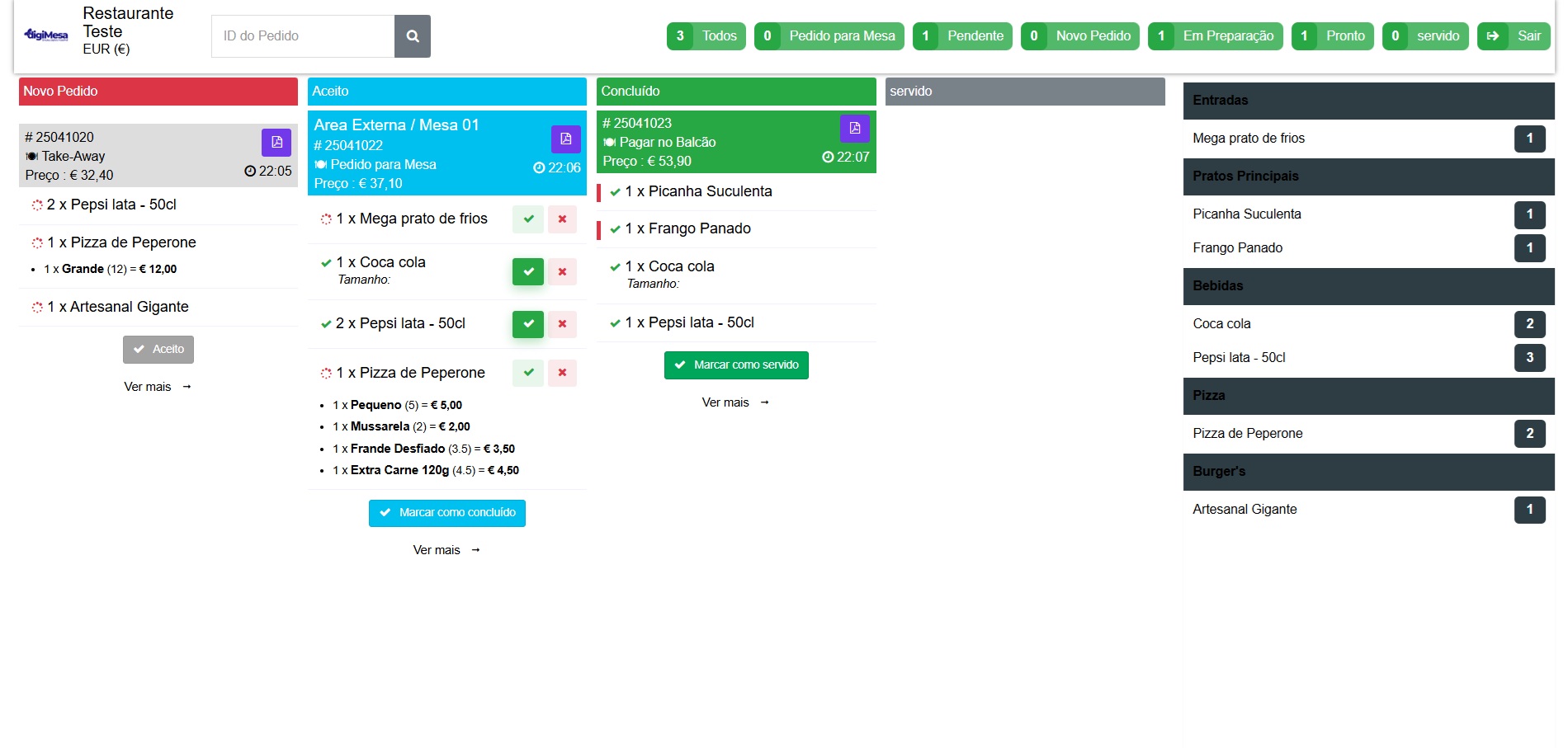 Organize a produção na cozinha como nunca antes! A EPC é uma tela pensada especialmente para a equipa de cozinha, exibindo apenas os pedidos a serem preparados. É simples, clara e evita erros — todos sabem o que preparar e quando, sem depender de papel ou confusão.